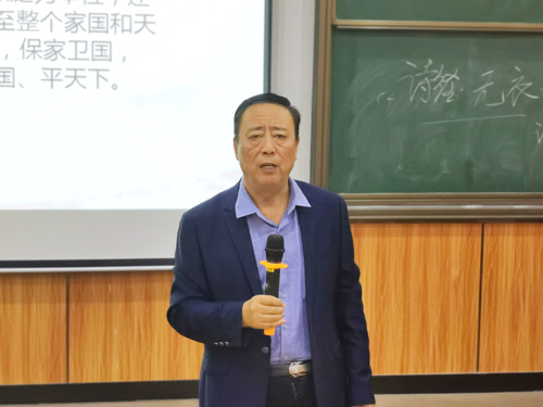 李成从爱国主义是中华民族优良传统、马克思主义中国化和习近平对爱国主义理论的传承与发展以及做新时代忠诚爱国者三个方面进行讲述。在讲座中,李成教授以家国同构为题给同学们例举了中华民族历代英雄们的爱国事迹和壮举,表达了对爱国主义英雄的崇高敬意,希望同学们向民族英雄学习立德,立功,立言“三不朽”,告诫同学们做人要讲究礼法,担当道义,以“德”为本。
