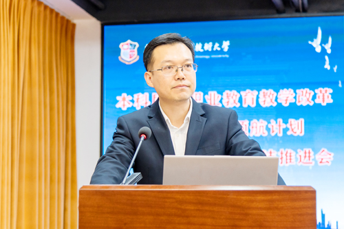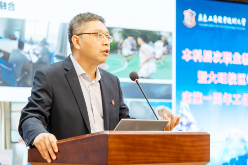 大旺校区教务处邓振华处长作教学工作汇报。他围绕“以问题导向为谋 以成果导向为实 稳步推动大旺校区教育教学改革工作”主题,从大旺校区教育教学改革工作的成绩与举措、工作经验与总结、下一阶段计划三方面作汇报。
