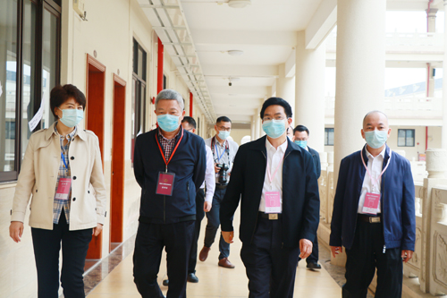图为肇庆市副市长、公安局局长董信奇(右二),广东省司法厅二级调研员王剑(左二),市司法局党组书记、局长王军(左一),市司法局党组成员、副局长谢庆满(右一)巡视考场