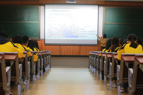 本网讯 11月24日下午,澳门网投明德大讲堂讲座第五十一讲在致知楼113课室举行,马克思主义学院副院长梁伟莹任主讲人,讲课主题为《塑造新时代粤港澳大湾区人文精神》,艺术学院以及商学院学生会、团总支及党务小组学生代表约150人参加了本次讲座。