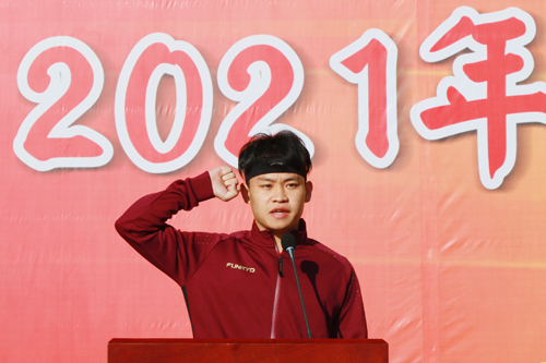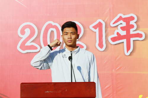 庄严的升旗仪式结束后,体育学院2020级运动训练1班的学子潘中凯代表运动员宣誓,表示将遵守比赛规则、服从裁判、尊重对手,发扬勇敢、顽强、拼搏的优秀品质,赛出风格、赛出水平、赛出友谊;体育学院教师邓杰文代表裁判员宣誓,表示将本着公平,公正,严肃,认真的原则,严格遵守竞赛规程,执行竞赛规则,服从大会安排,尊重运动员,确保大会各项比赛顺利进行。
