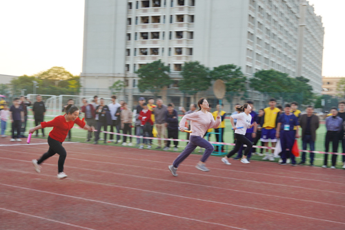 教职工趣味运动会上的4×50接力跑和五人六足比赛项目无疑是运动场上最受欢迎的比赛。教职工个个精神饱满,斗志昂扬。工作中,他们传道授业、润物细无声,赛场上,他们团结拼搏、充满激情。激烈振奋的喝彩声把整个运动会推向高潮。