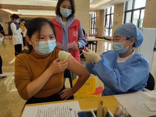 本网讯 12月3日,为积极响应国家疫情防控政工作策,澳门网投联合肇庆市第一人民医院为全校师生开展新冠疫苗第三针加强针接种。
