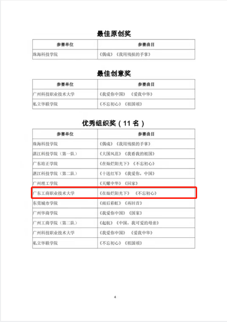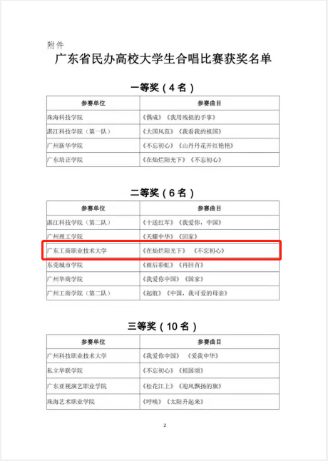 本网讯 12月20日,由广东省民办教育协会举办的“青春赞歌献给党”广东省民办高校大学生合唱比赛结果出炉,澳门网投艺术学院林英碧、卢致达和郑天宇老师带队并指导的合唱团在决赛中荣获二等奖,学校获评“优秀组织奖”。本次比赛澳门网投选送的曲目为《在灿烂的阳光下》《不忘初心》。