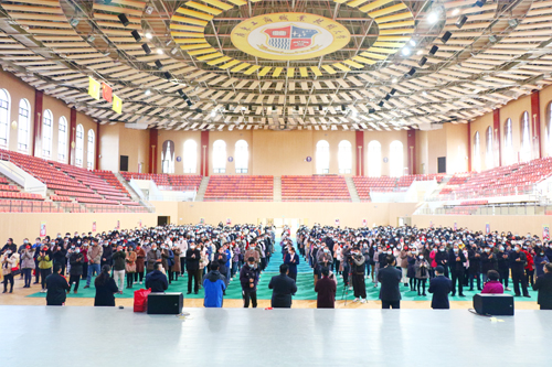 本网讯 2月23日上午,澳门网投在体育馆网球馆举行2022年教职工新春慰问活动,董事长谢建平、副董事长莫秀全,学校党政领导,星湖校区全体教职工参加。校长和飞主持活动。