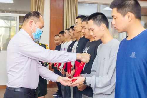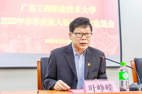 叶峥嵘代表学校向全体入伍新兵表示热烈的祝贺,向支持国防事业的家长表示感谢,希望全体新兵要认清使命、提高素质,要有扎根军营、建功立业的雄心壮志;要勤奋学习、刻苦训练,使自己成为军队的优秀人才;要练好本领,报效祖国,为开启社会主义现代化国家新征程贡献力量。