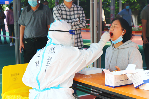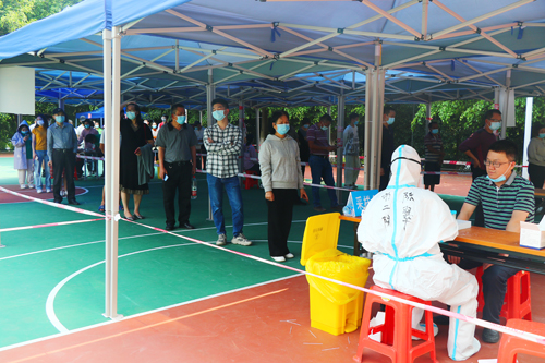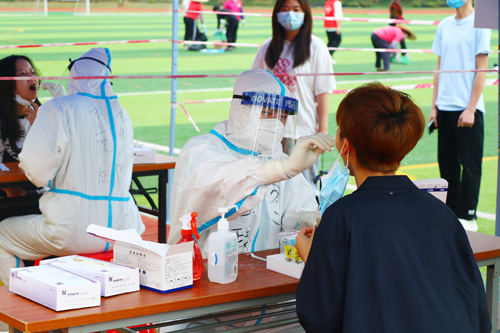 本次核酸检测分为明湖田径场和西区篮球场两个检测点,设置了测温等候区、登记区、采样区,并根据各场地实际分开设置了进、出口通道。在检测现场,各工作组工作人员和学生志愿者引导师生保持1米间隔排队,经过查验健康码、行程码,测量体温、信息登记等环节后,进入采样区采样,完成采样后立即从出口离开在检测现场。为避免人员聚集,全体师生员工佩戴口罩,根据学校事先安排好的秩序,分批次错峰到达各采样点。整个过程井然有序、科学规范、严谨细致、快速高效,得到了师生们的高度赞许。(供稿:宣传部 摄影:学生记者)