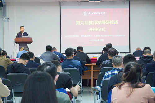 本网讯 4月20日下午,第九期教师发展研修班开班仪式在大旺校区工业机器人工厂一楼顺利开班,大旺校区管委会成员、马克思主义学院梁伟莹、张斌和第九期教师发展研修班全体学员出席开班仪式,仪式由综合办公室主任郑志峰主持。