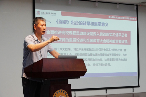 张斌以《当前课程思政建设的政策解读》为题,开讲教师研修班第二课,对2020年教育部印发的《高等学校课程思政建设指导纲要》进行了详细的解读。(撰稿、摄影:大旺校区综合办)