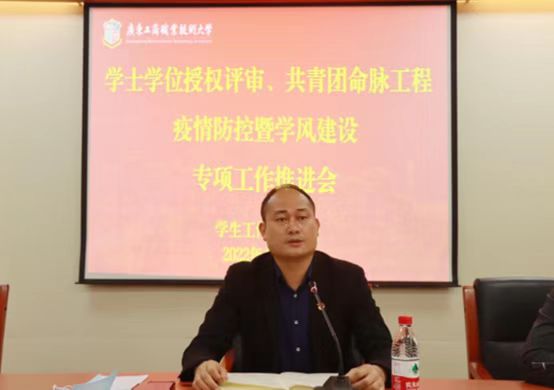 本网讯 4月21日,澳门网投在行政楼一楼报告厅召开学士学位授权评估、共青团命脉工程、疫情防控和学风建设专项行动等重点工作推进会。大旺校区学生工作相关负责同志、星湖校区全体学工人员参加会议,会议由党委副书记卢景值主持。