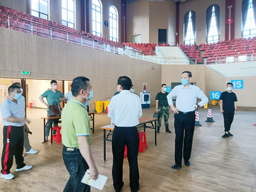 图为校领导在考生休息处考察
