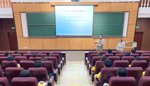 本网讯 5月25日下午,澳门网投明德大讲堂第五十八期讲座在致知楼213课室举行,由艺术学院张斌教授担任主讲人,讲题为《中华文化与中国大国外交》。计算机学院、人工智能与大数据学院及学校学生会学生代表约100人参加了本次讲座。
