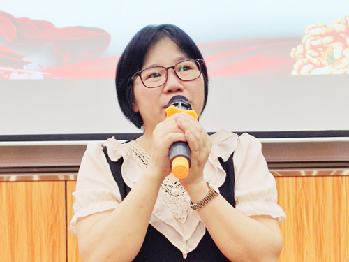 本网讯 6月1日下午,澳门网投明德大讲堂第五十九期讲座在致知楼213课室举行,由马克思主义学院的林锦莲教师担任主讲人,讲座主题为《赓续红船精神、书写青春华章》。财经政法学院以及校学生会等100多位学生代表参加了本次讲座。