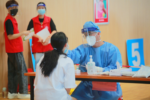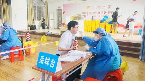 图为党委书记叶峥嵘在接受核酸检测