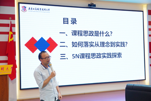 梁健老师以《理念到实践—课程思政实施探索》为题展开第五讲课程。他阐述了开设该门课程的重要意义,强调教师通过课程实践的正确理解和贯彻落实思想政治教育思想的重要性,牢牢把握住为国从教、立德树人的教育根本;阐释了如何从理念上先行,逐步深化到教学项目实践中的思政协同育人的探索;阐释了习近平总书记关于教育的重要论述的时代背景、科学内涵和重大意义。