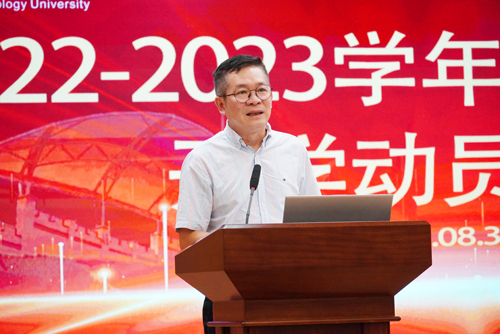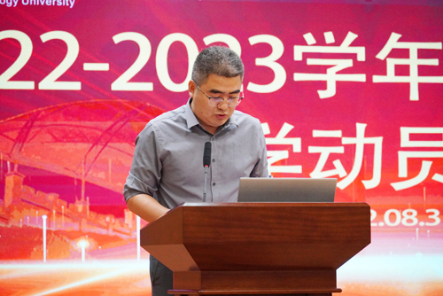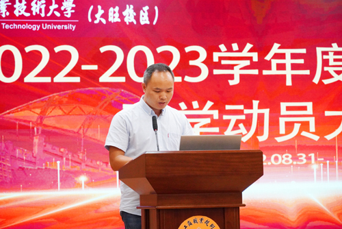 本网讯 8月31日下午,大旺校区2022-2023学年度第一学期开学动员大会在智汇大讲堂召开,副校长丁孝鹏、刘志坚、方泽强以及校区全体教职工参会,大会由大旺校区学生处书记钟毅主持。
