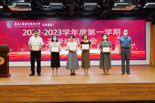 邓振华宣读《关于表彰大旺校区“最受学生喜爱教师”的决定》,并与唐万有共同为代春雷等15名获此荣誉称号的教师颁奖。