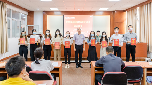 在结业仪式上,卢景值为参训辅导员代表颁发结业证书。随后艺术学院辅导员潘帅发言,他表示要坚持立德树人的根本任务,恪守辅导员职责,努力提升业务能力,主动作为,勇于担当,成为学生的人生导师和健康生活的知心朋友。