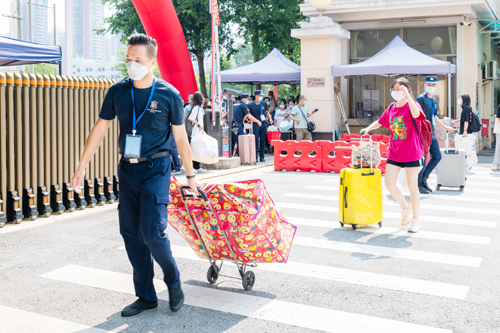 董事长谢建平、副董事长莫秀全及学校党政领导来到迎新现场,了解新生报到情况、服务保障措施和各单位迎新举措,要求全体工作人员要树立“安全第一”的工作理念,以人性化的周到服务,统筹做好疫情防控和新生报到工作,让学生舒心、让家长放心。同时,董事会领导和学校党政领导还专门与2022级新生进行亲切交谈,对他们的到来表示热烈欢迎,勉励他们尽快转变角色,及早适应大学生活,做好人生规划,好好学习知识技能,努力成长为能堪当时代重任的合格的高层次职业技术技能型人才。在学校的各条校道上,随处可见师生志愿者为新生提供路线引导和行李搬运。