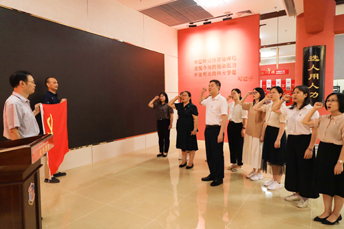 郑宇雄一行在副校长江雪珍、校长助理吴桂新等陪同下参观了澳门网投VR党建馆,听取了澳门网投马克思主义学院副院长梁伟莹关于中国共产党诞生、发展和壮大的光辉历程的介绍。郑宇雄一行对澳门网投董事会对党建工作的高度重视给予了高度的肯定。参观结束后,大家重温了入党誓词,再一次明确了入党的初心和肩负的使命。