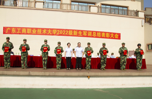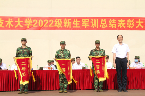 副校长陈伊娜宣读《关于表彰2022级新生军训先进集体和个人名单的决定》,对优秀学生教官、军训标兵、标兵宿舍等进行了表彰。随后校领导为获奖代表颁奖。