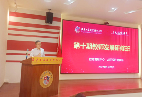 本网讯 9月26日上午,由职业教育与产业发展研究院和大旺校区教务处联合举办的第十期教师发展研修班开班典礼及第一讲在大旺校区初心堂顺利举行。职业教育与产业发展研究院黎旋老师担任第一讲主讲人,主持人由大旺教务处处长邓振华担任。智能制造与汽车工程学院和人工职能与大数据学院副院长、教研室正副主任、教学秘书和行政秘书,大旺校区教务处工作人员,大旺校区教学督导委员会工作人员及相关教研室教师参加。