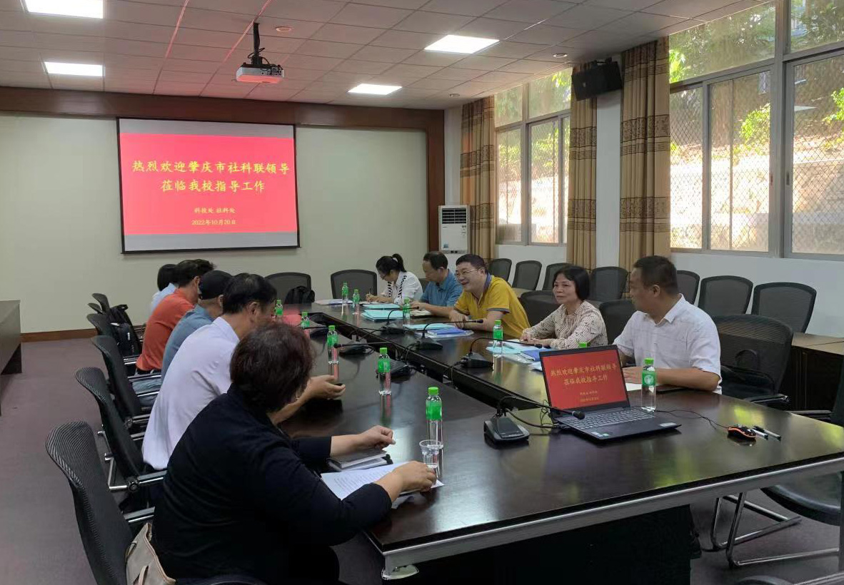 本网讯 10月20日下午,由肇庆市社科联主席程彦春带队一行5人莅临澳门网投,对澳门网投社科研究、思政教育、省级社科普及基地进行了调研和指导。苗德华副校长、科技处以及各社科普及基地负责人参加了本次调研座谈会。