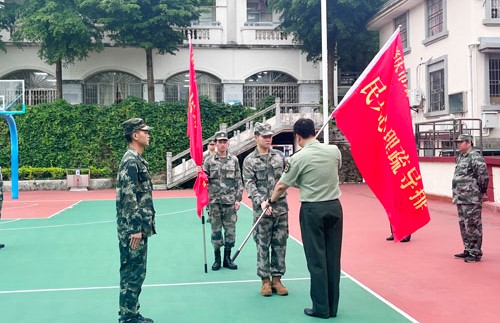 最后,许涛在讲话中对全体基干民兵提出了三点要求:一是要牢记自己的身份,尽快熟悉人员相识,认真履行职责和义务;二是要为其他同学做好表率,时刻遵守纪律,用铁一般的意志培养自己健全的人格;三是树立起新时代基干民兵队伍的形象,不断提高军事素质和专业技能,随时做好应战应急准备。
