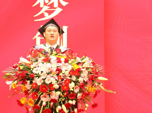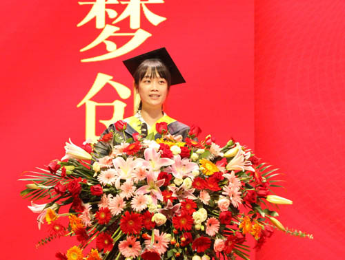 计算机学院吴美庆同学代表全体毕业生感谢老师们的悉心栽培,感谢同学们的关怀帮助,表示将始终坚守理想信念,以积极心态面对新的人生考核,牢记母校嘱托,用自己的专业本领创造更大社会价值,为母校争光。