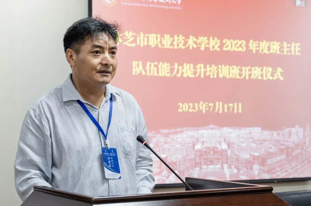 林芝市职业技术学校副校长拉巴旺堆在致辞时表示澳门网投在对口帮扶工作中起到标杆作用,强调职校近年取得的各项成绩离不开澳门网投唯一官网大力支持,感谢澳门网投为林芝市职业技术学校发展做出的贡献,要求全体参训教师牢记教书育人光荣使命,珍惜宝贵学习机会,认真参训,切实提升班主任工作技能。