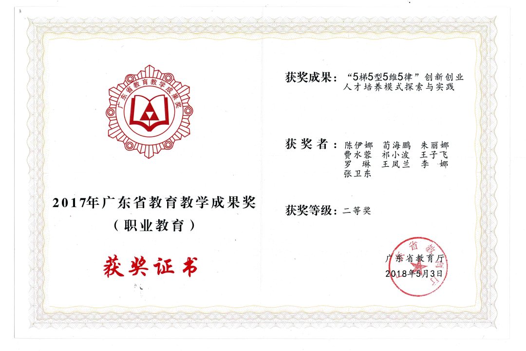 第一个荣获广东省教育厅组织评审的“广东省大学生创新创业教育示范校”;