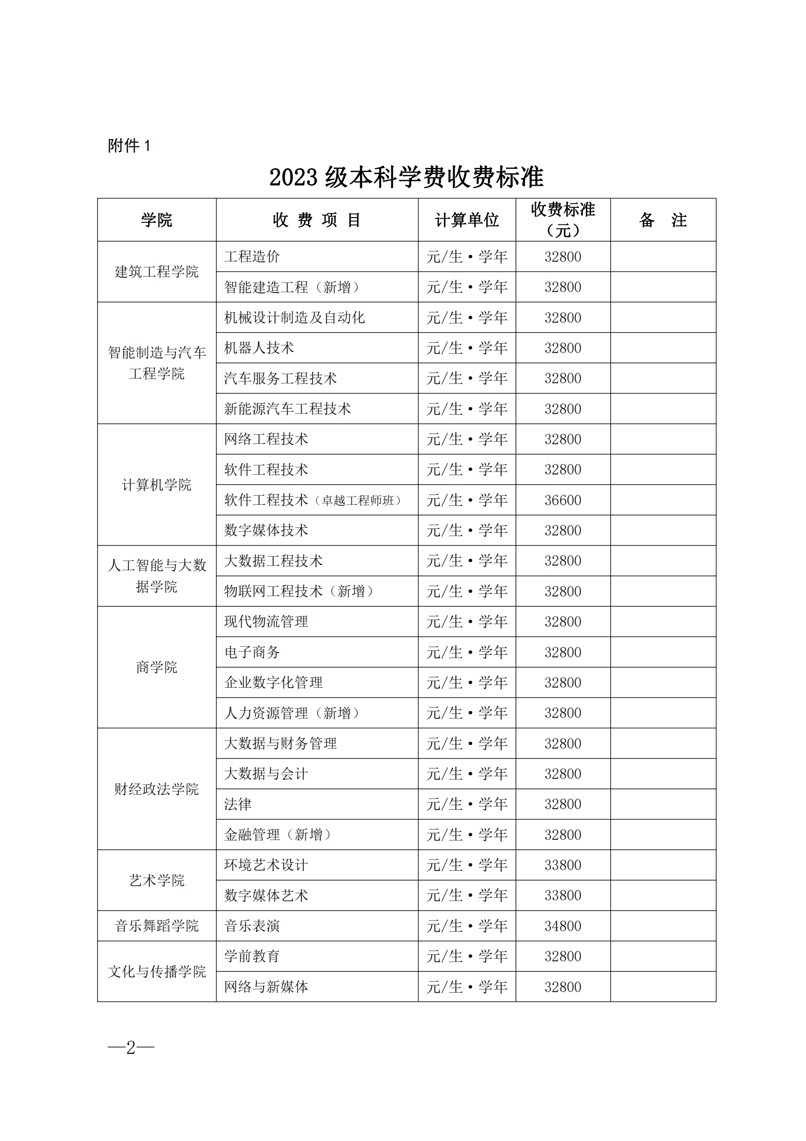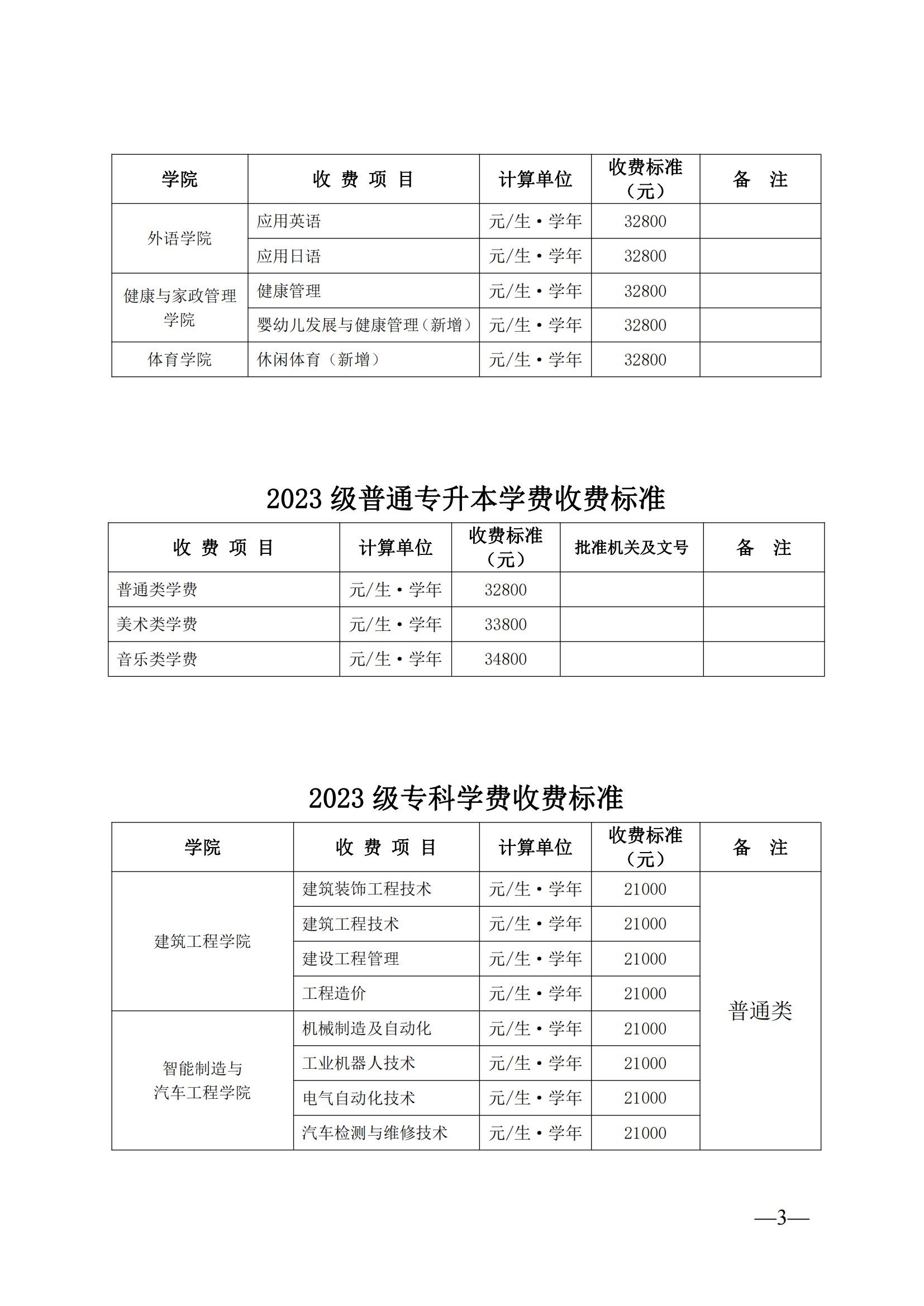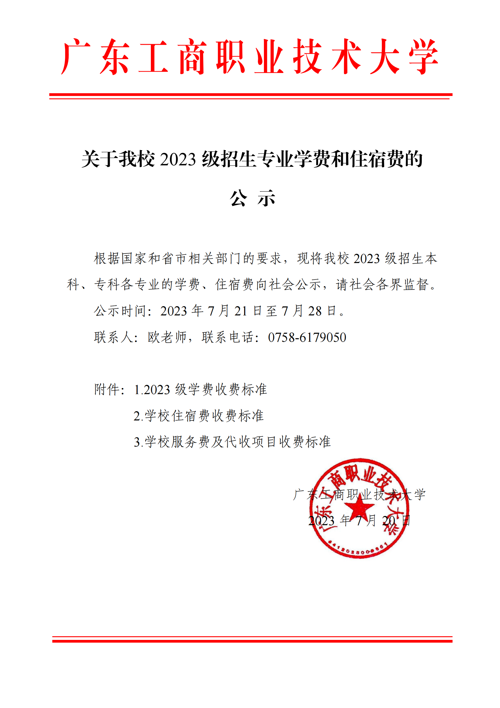 澳门网投唯一官网 2023 级招生专业学费和住宿费的公示