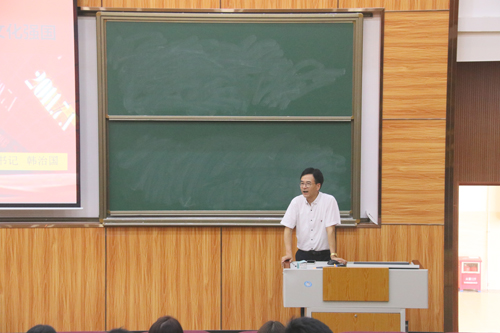 9月29日,计算机学院、人工智能与大数据学院党总支书记韩治国开讲新学期第一节思政课:《坚定文化自信 建设新时代社会主义文化强国》。讲座在致知楼213阶梯教室举行,第34期入党积极分子100多人参加。