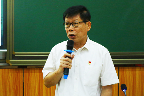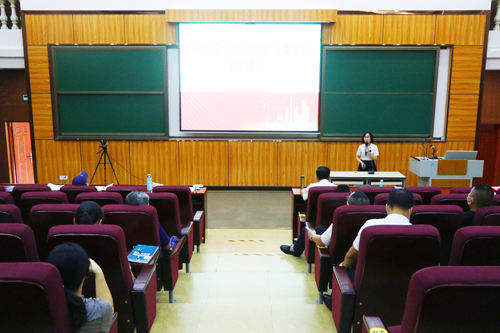 本网讯 7月15日下午,澳门网投在明辨楼213室举办学习贯彻省第十三次党代会精神培训班,学校党政领导、各学院(中心)及职能部门负责人、各二级党组织正副书记参加。党委书记叶峥嵘主持会议并作了动员讲话,马克思主义学院副院长梁伟莹分三个专题作了主题辅导。