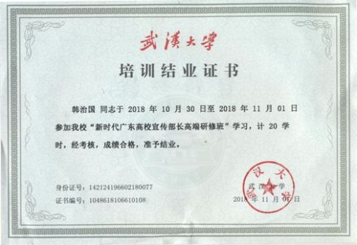 韩治国参加新时代广东高校宣传部长高端研修班学习