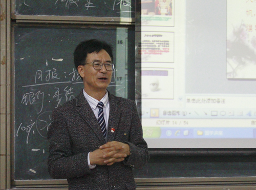 图为韩治国在做讲座