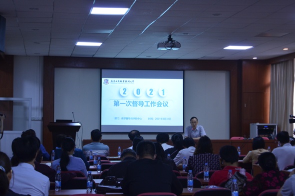 3月31日,澳门网投在行政楼学术报告厅召开本学期第一次督导工作会议。校长和飞、副校长陈伊娜出席会议,教务处科级以上干部,各学院(中心)主管教学负责人,全校专(兼)职督导员参加了会议。此次会议由督评中心主任杨贞斌主持。