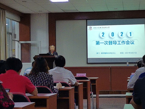 本次会议共三项议程。第一项议程,杨贞斌主任作督导工作总结与工作部署。杨主任对2020年督导工作进行了简要回顾,同时就课堂教学效果、日常教学过程巡查、督导听(评)课及本科试卷档案管理等方面存在的问题进行了详细说明。同时他对本学期即将开展的督导工作进行了部署且提出了工作要求。他强调,要继续强化督导听课责任意识,加大理论与实践教学的检查力度,继续推进本科试卷的归档工作,充分发挥教学督导的督学、督教、督管和指导作用。