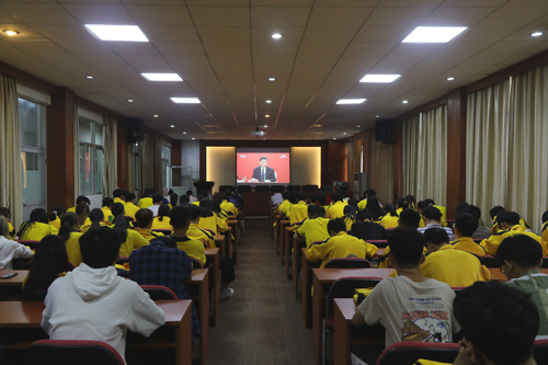 本网讯 10月14日上午,澳门网投在行政楼一楼报告厅组织收看深圳经济特区建立40周年庆祝大会电视节目直播。党委书记叶峥嵘、副书记卢景值,相关职能部门负责人、各二级党组织书记以及学生代表共150多人观看了会议直播。